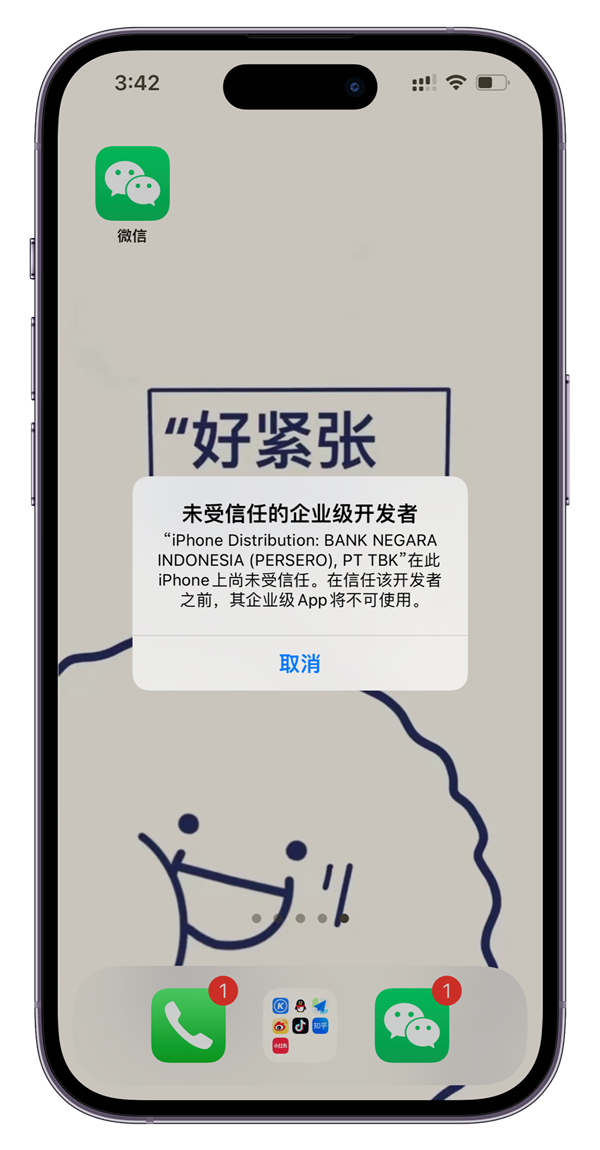 步骤五,看到企业级软件,点击下方文件,在弹窗中点击信任
