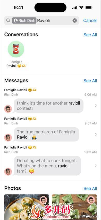 Message 应用还引入了搜索过滤器的功能,帮助你更快更精准地找到需要的信息