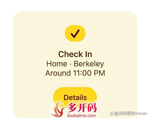 苹果在此次更新中进一步加强了用户的安全功能,在 Message 应用里,用户可以使用Check In 功能, 它会自动计算从当前位置到达目的地时所需时间,并在到达时自动通知您的朋友或家人。如果他们没有朝着目的地前进,有用的信息将暂时与选定的联系人共享,例如设备的位置、电池电量和手机服务状态。任何共享的信息都是端到端加密的。