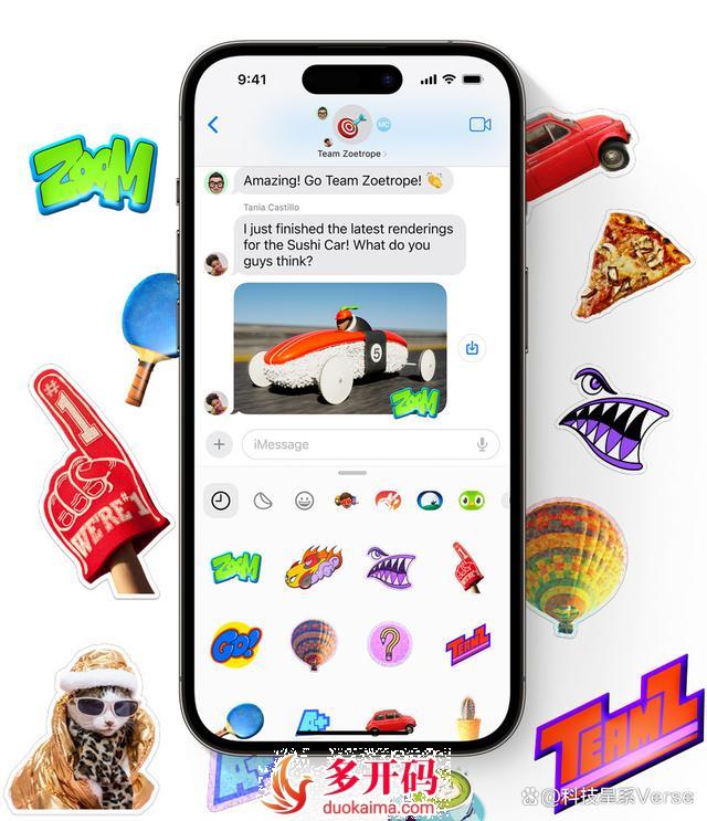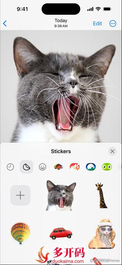 苹果更新了内置的贴纸素材库,用户也可以通过自己的照片创建动态贴纸。贴纸抽屉位于表情符号键盘中,你可以在任何可以访问表情符号的地方使用贴纸——包括 软件 Store 中的应用程序,为照片、文档、屏幕截图等添加贴纸。