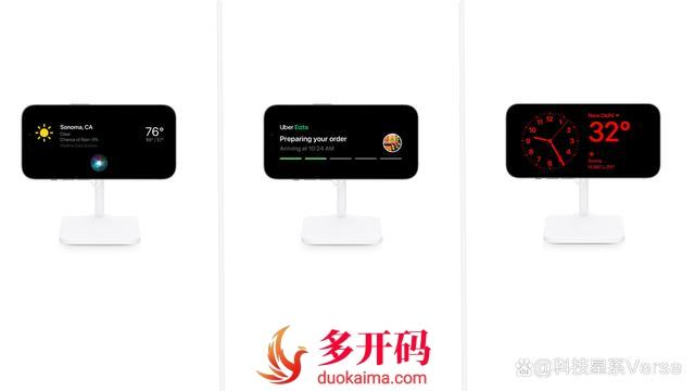 小编觉得这个功能还蛮不错的,只需横着一放,就能使你的iPhone瞬间变成小夜钟,而且它还能根据周围的光线自动调节亮度,气氛拉满。配合小部件功能可以控制掌握实时发生的事情,例如天气、比赛得分或送餐进度。