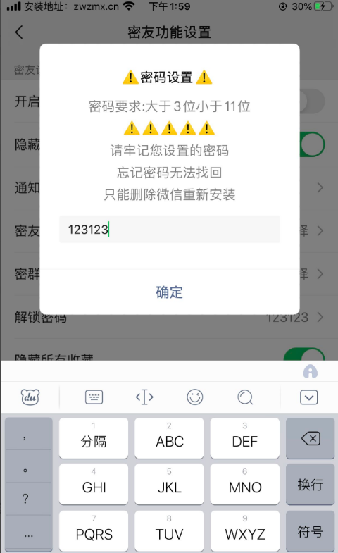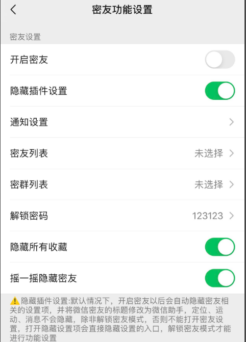 4、设置好密码以后我们选择密友列表,把需要被隐藏的好友拉进密友列表里,然后点击完成,回到功能设置界面在点开启密友即可